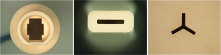 Perhaps our specialty at ATS is the ability to integrate shaped holes into complex advanced ceramic product. Access to some of the most sophisticated tooling in the world has allowed us to produce small, precise holes of many different and unusual shapes. The three images below are examples of just some of the uniquely shaped, as-molded holes produced by ATS for products used in various industries. Try machining these shapes in fired advanced ceramic.